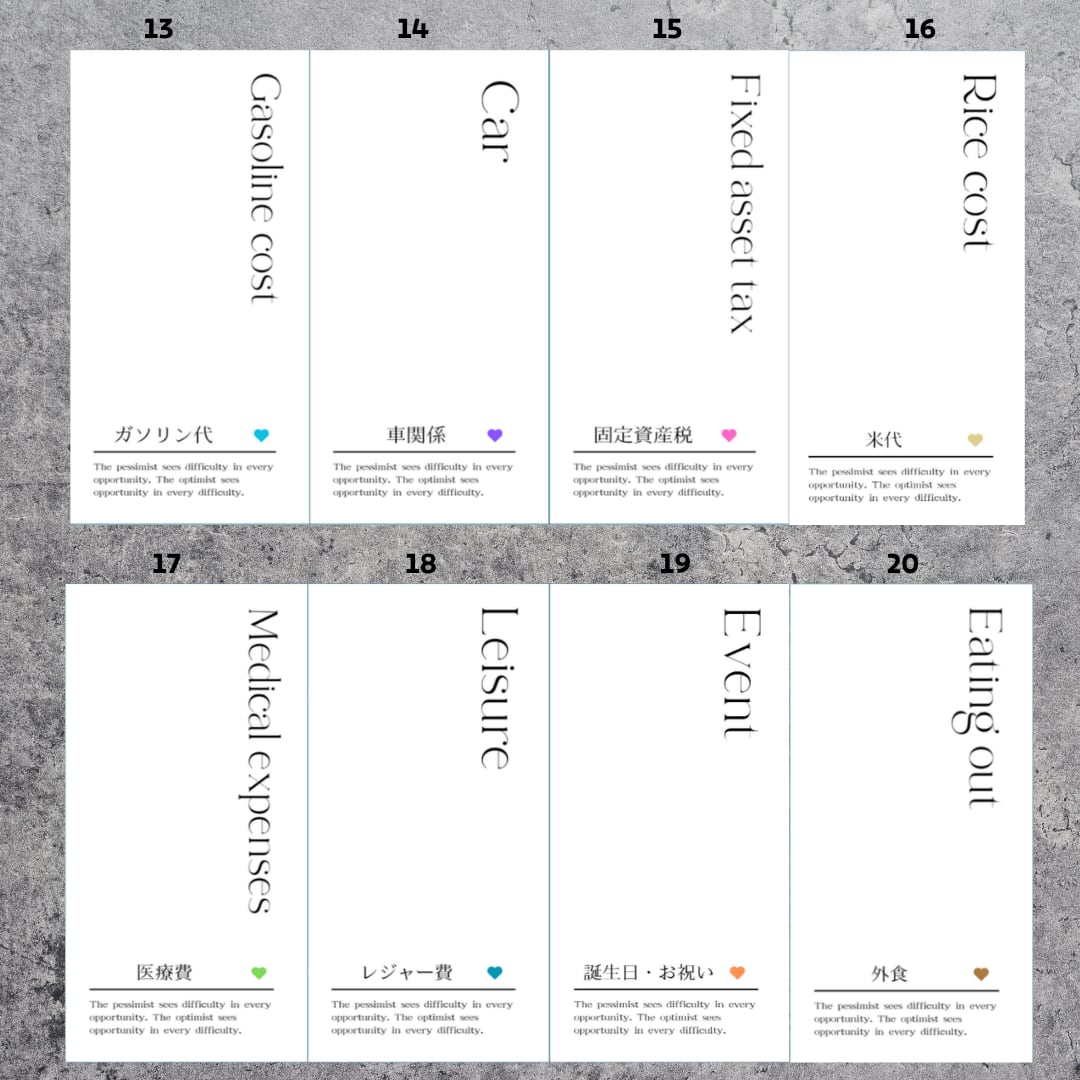 仕分け/予算/積立管理用の項目別リフィルです。