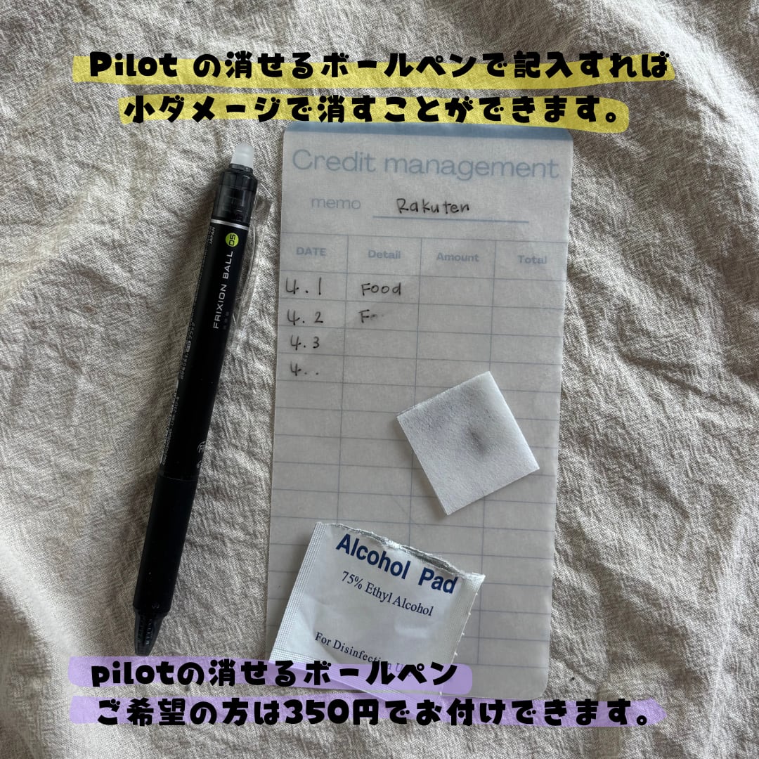 ご希望の方はpilotの消せるボールペン 1本350円でお付けできます。